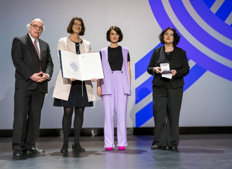 Musikalisch wurde die Feier durch das Trio Alan Bern (Klavier und Akkordeon), Sveta Kundish (Gesang) und Mark Kovnatsky (Geige) begleitet und erntete begeisterten Beifall, auch von Peter Maffay, der als Preisträger der Buber-Rosenzweig-Medaille im Jahre 2018, ebenfalls der Veranstaltung beiwohnte.