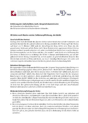Montag, 24. November 2025 - Zum 60-Jahre-Jubiläum von Nostra aetate hat die Jüdisch/Römisch-katholische Gesprächskommission zu einer Dialogkonferenz eingeladen. Im Anschluss stellte die Kommission eine gemeinsame Erklärung zum jüdisch-katholischen Dialog vor.