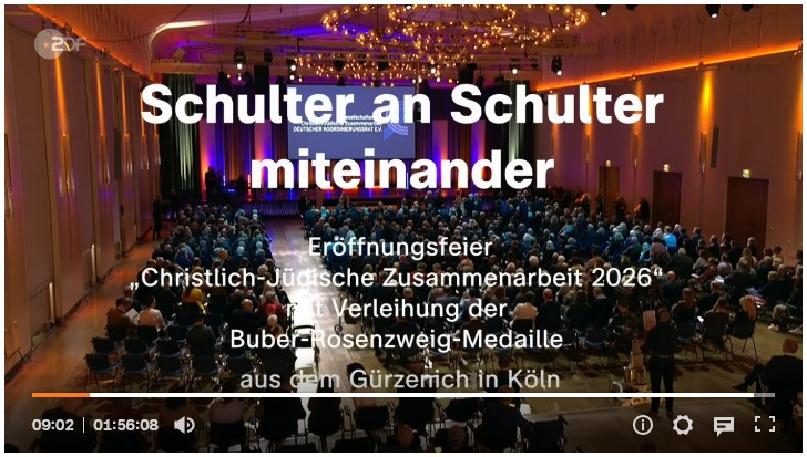 Aufzeichnung der Verleihung der Buber-Rosenzweig-Medaille am 8. März 2026 im Kölner Gürzenich im Rahmen der Eröffnung des Jahres der christlich-jüdischen Zusammenarbeit 2026-5786/5787