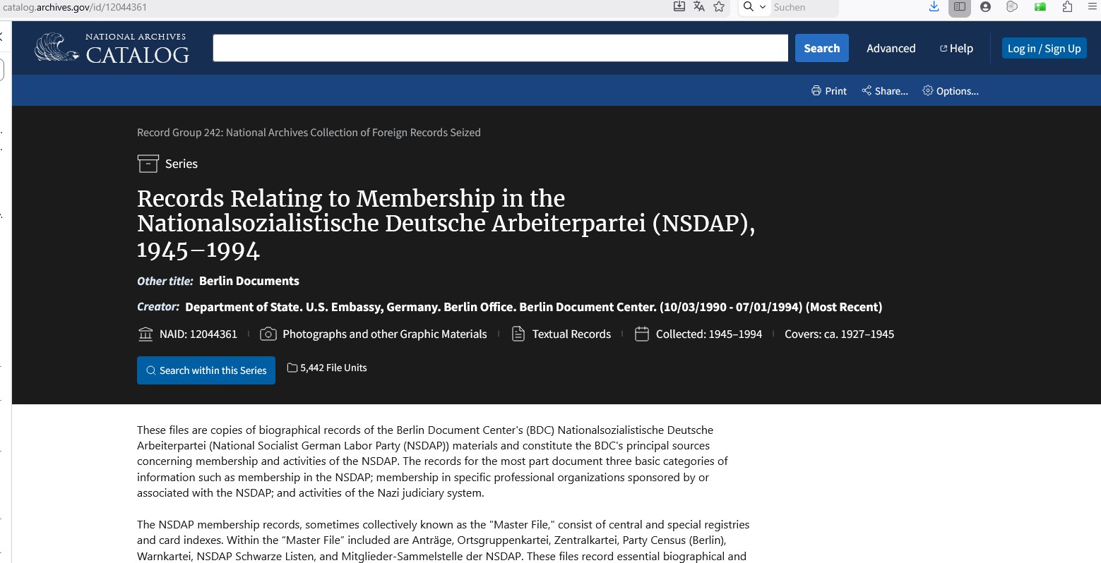 Von Majd El-Safadi und Amelie Luise Kaiser | 19.03.2026 - Das amerikanische Nationalarchiv hat erstmals überlieferte Mitgliederkarteien der NSDAP ins Netz gestellt. Wie die Suche in der Datenbank funktioniert und was es bei der Recherche zu Ihren Vorfahren zu beachten gilt...